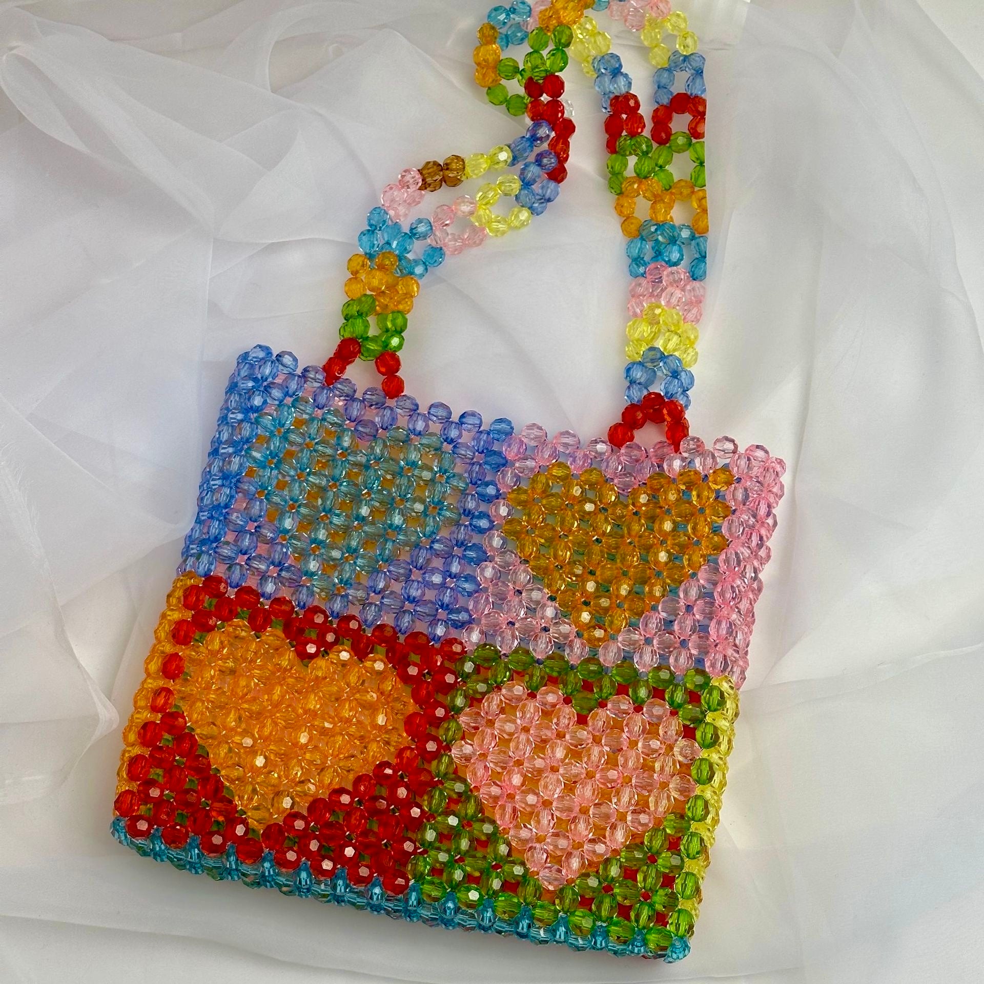 Cute Heart Beaded Bag – High-Gloss Crystal Elegance– Handmade with Love, Timeless Elegance Luxury crystal bead bag, valentine's day gift for wife, crystal bag, elegant,evening bag, gift for her, handmade bag, wedding guest bag,